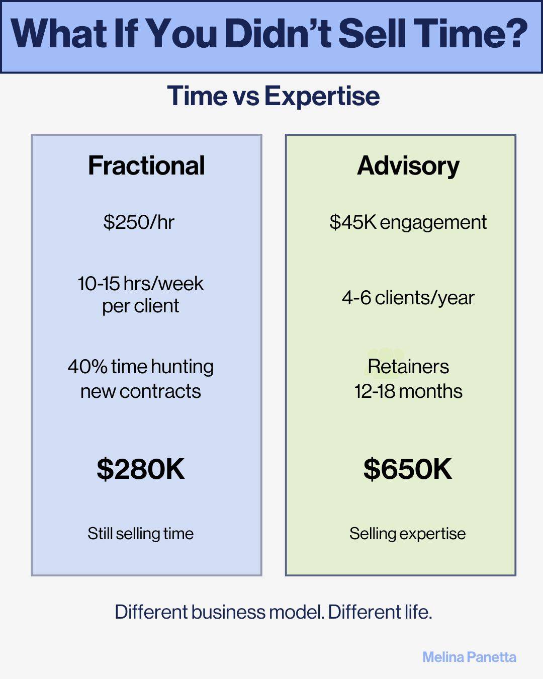 In this week's newsletter, I want to break down the difference between fractional and advisory models, the pros and cons of each, and which one replaces your corporate salary faster.