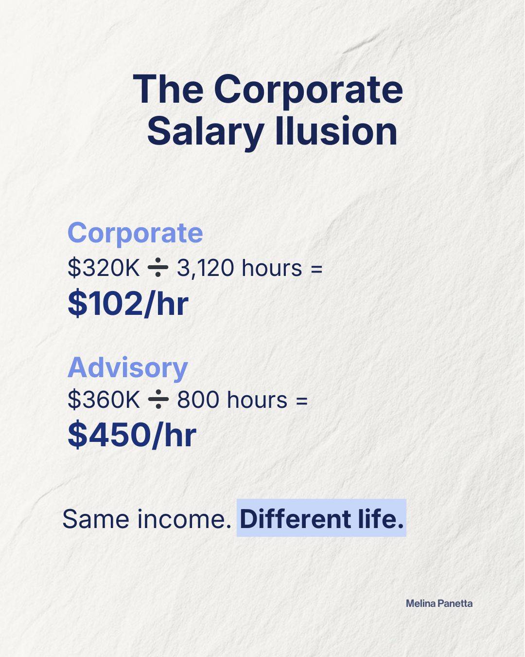 That same feeling carried over when I knew I wanted to leave corporate long before I actually did. Every time I got close to pulling the trigger, the same thought loop would start: "Who's going to pay me for this? Without this logo on my business card, who am I?"